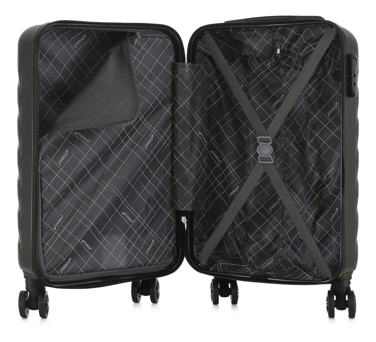 Seu design rígido em material ABS garante durabilidade e proteção para seus pertences. As quatro rodas proporcionam mobilidade suave e fácil manuseio, enquanto as correias internas mantêm seus itens organizados e seguros durante a viagem.